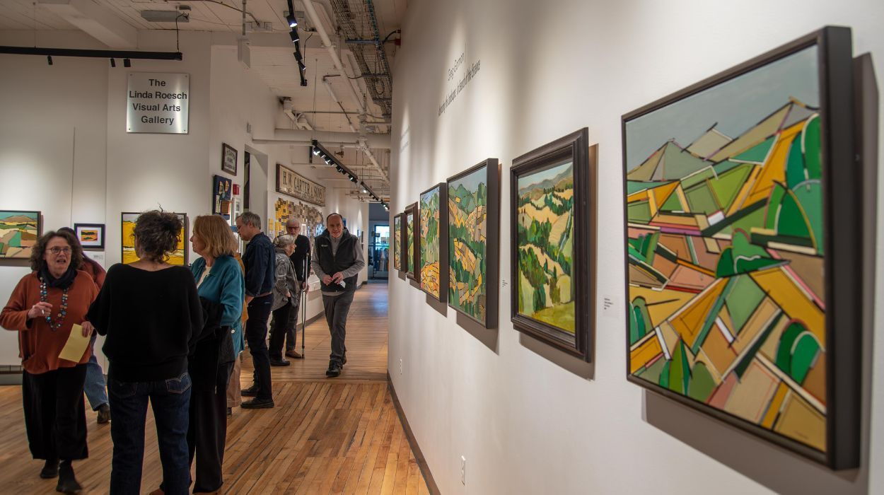 The Carter-Kelsey Building—named for two family benefactors— was once an overall and garment factory. Today it is home to three floors of creative wonderland. The first floor provides access to five named galleries, the Schleicher Family Children's Art Studio, the Bank Street Gallery retail shop, and administrative offices. The second floor hosts the North and South Studio classrooms, our Digital Arts Lab, the Johnson Sisters Lounge and Resource Room (our coworking space), artist Studios and offices. On the Third Floor you'll find artist studios, hallways packed with art, a tucked away cafe space, and Gallery Three, our studio artists' gallery. Access the Carter Kelsey Building with any level of membership.